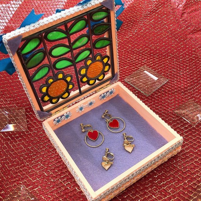 グラスアートの蓋がとってもかわいい小物入れになっています♪