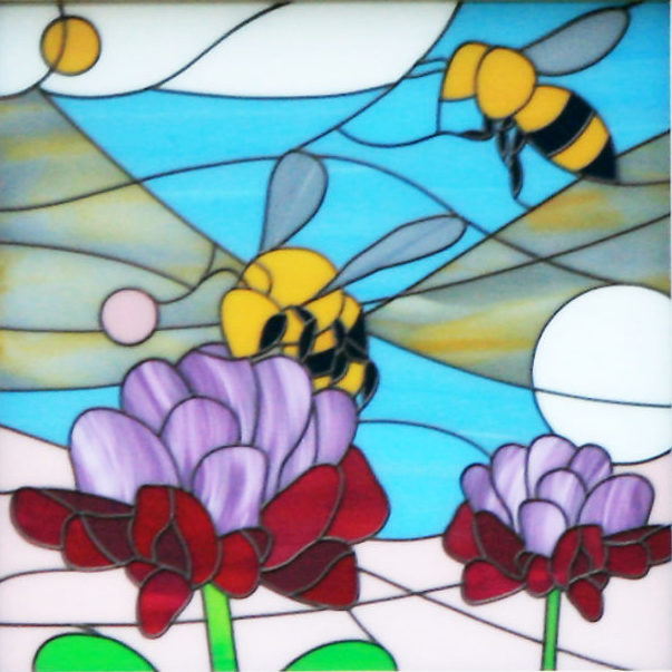 レンゲとミツバチ 飾り窓 SGOステンドグラス