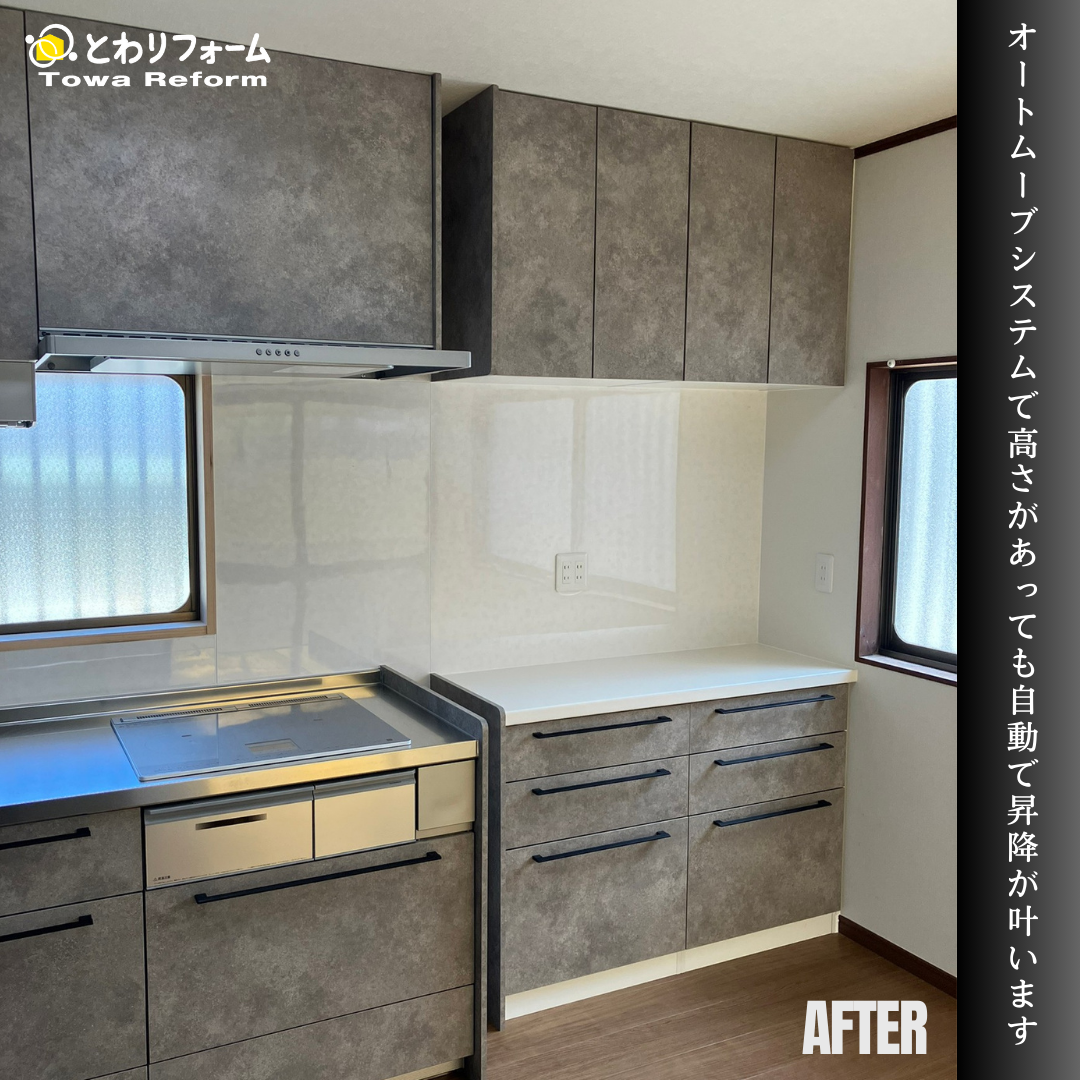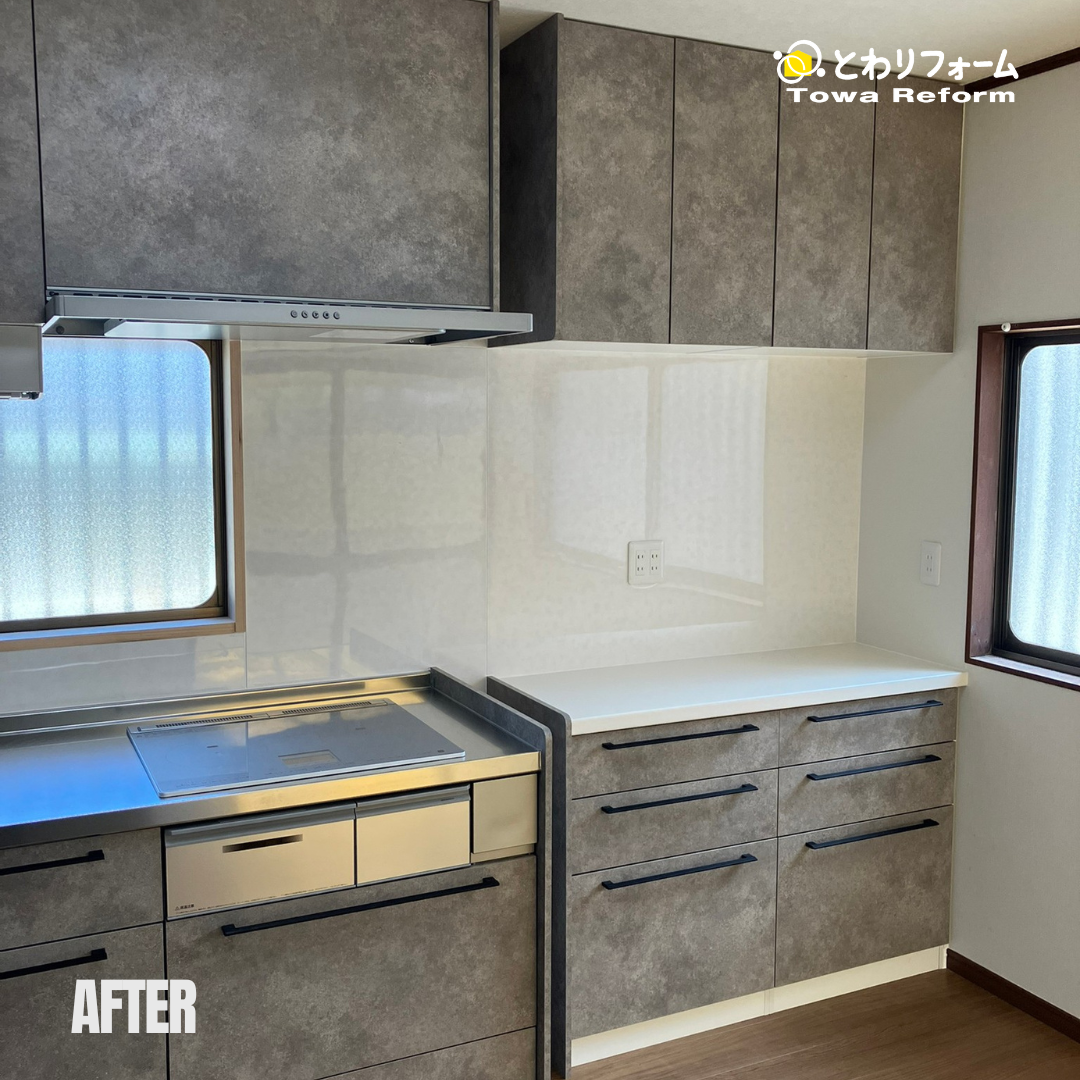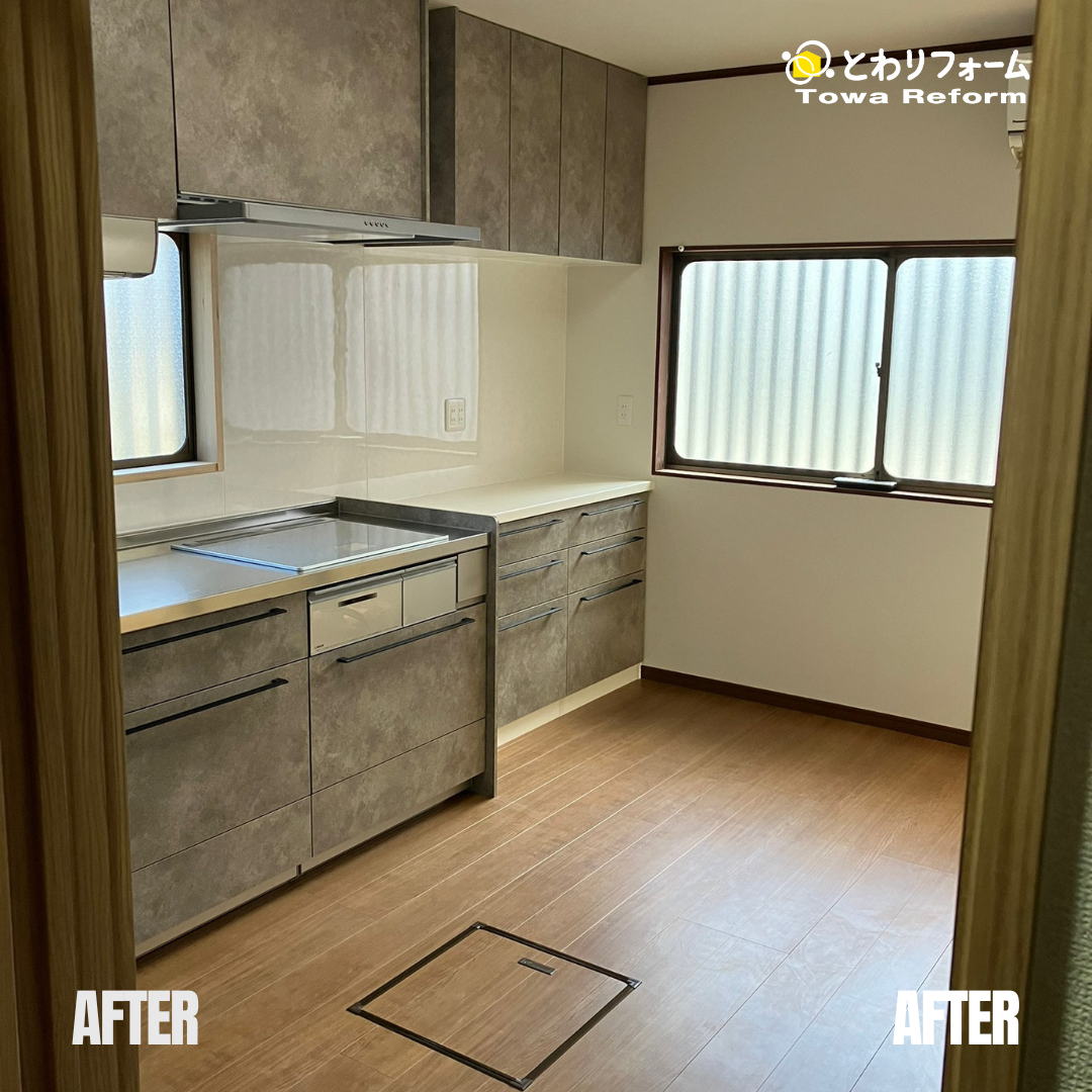 同じ室内とは思えないほど、イメージも変わり快適なキッチンへと変貌しました。