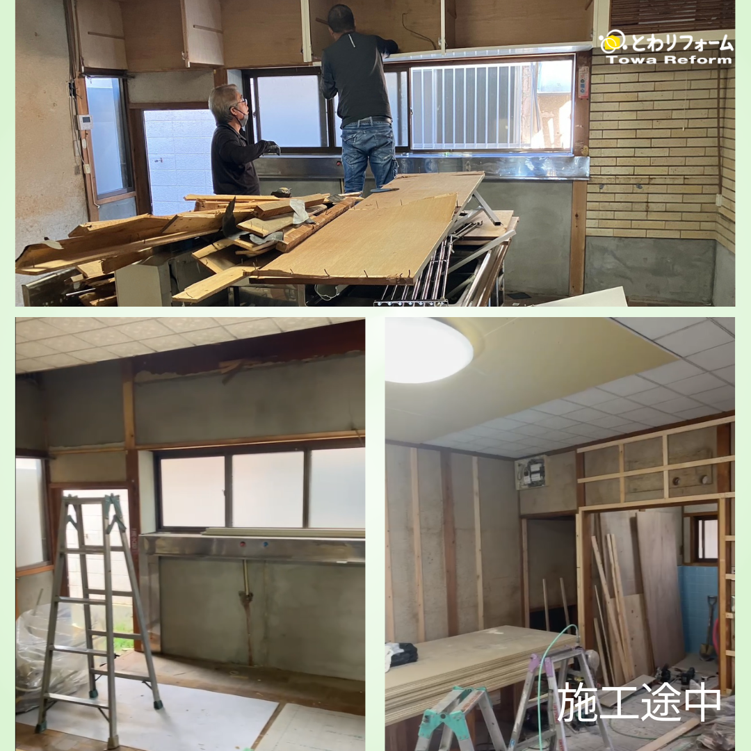 工事内容は、キッチン・浴室・LDKとトイレの内装を中心とした全面的な改修。