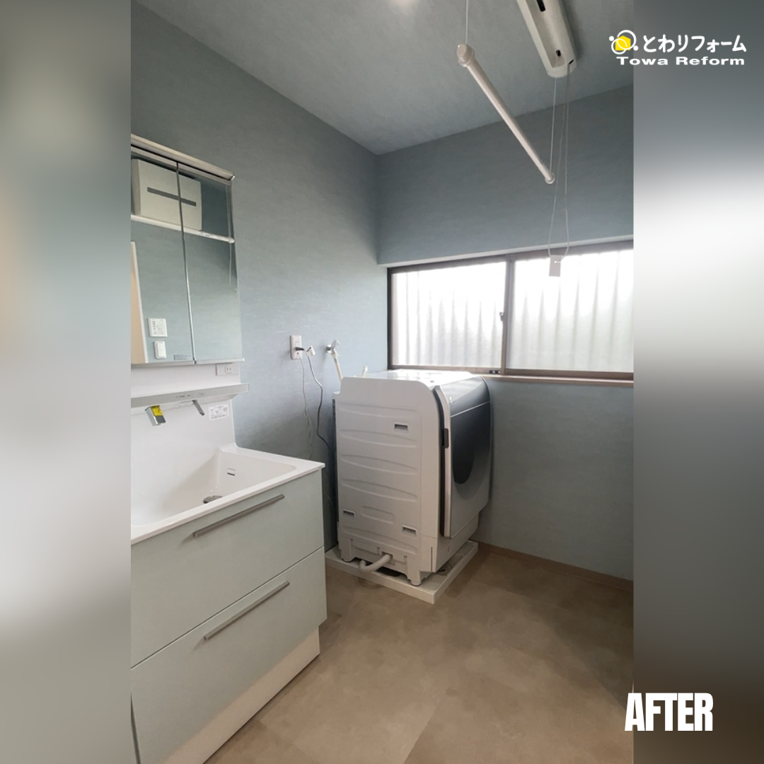 洗面脱衣所が広くなり、洗濯物をさっと干せてとても便利になったと奥様も喜んでおられました。