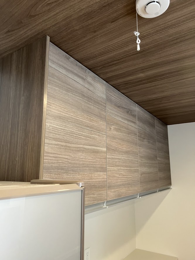 担当者コメント/カップボードを取付る為に1日目は下地補強とクロスの貼替えを行い、2日目でカップボードの取付をして