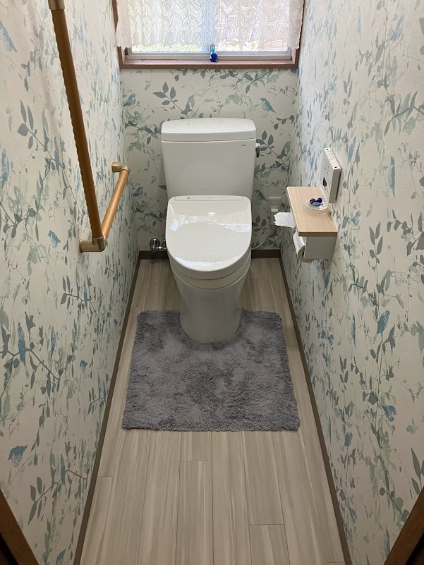 担当者コメント/トイレの入替、クロス・クッションフロアの貼替、スイッチ・コンセントの取替え、手すりの取付を行いました。