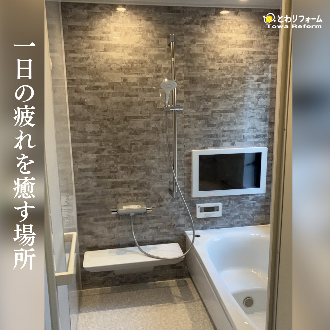さらに、お客様のご要望で浴室テレビを設置し、ゆったりとリラックスできるくつろぎのバスタイムを実現しました。