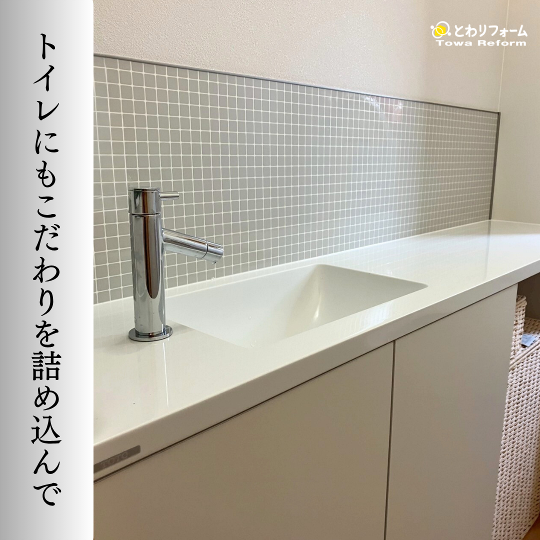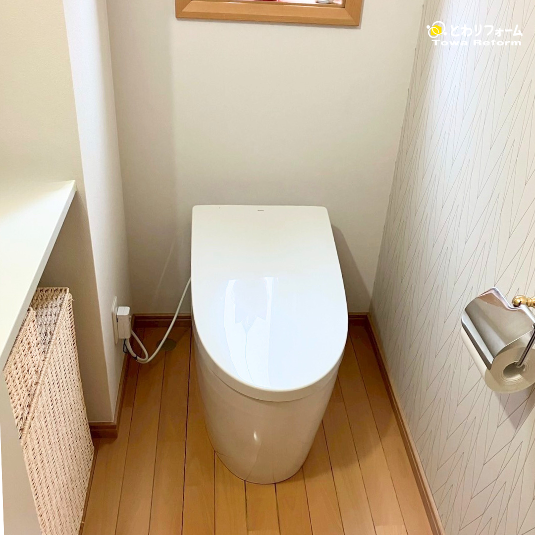 装飾を抑えた分、空間の余白が際立ち、お施主様が理想とする「シンプルで落ち着けるトイレ」にぴったりの仕上がりに。