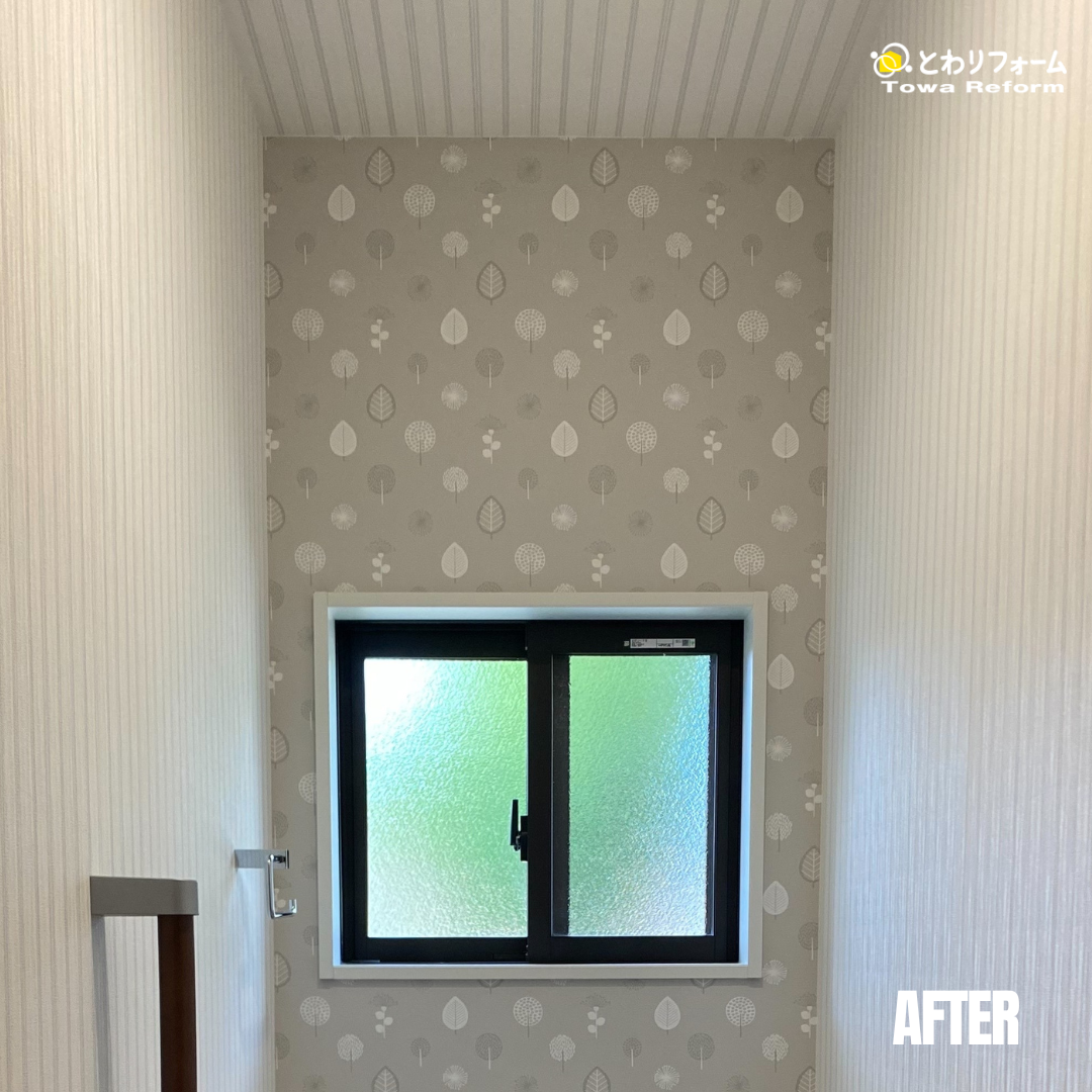 内装は、お客様ご自身で壁紙や天井クロスを選ばれ、シンプルながらも個性が感じられる仕上がりに。毎日使う場所だからこそ、「お気に入りの空間」として暮らしに彩りを添えています。