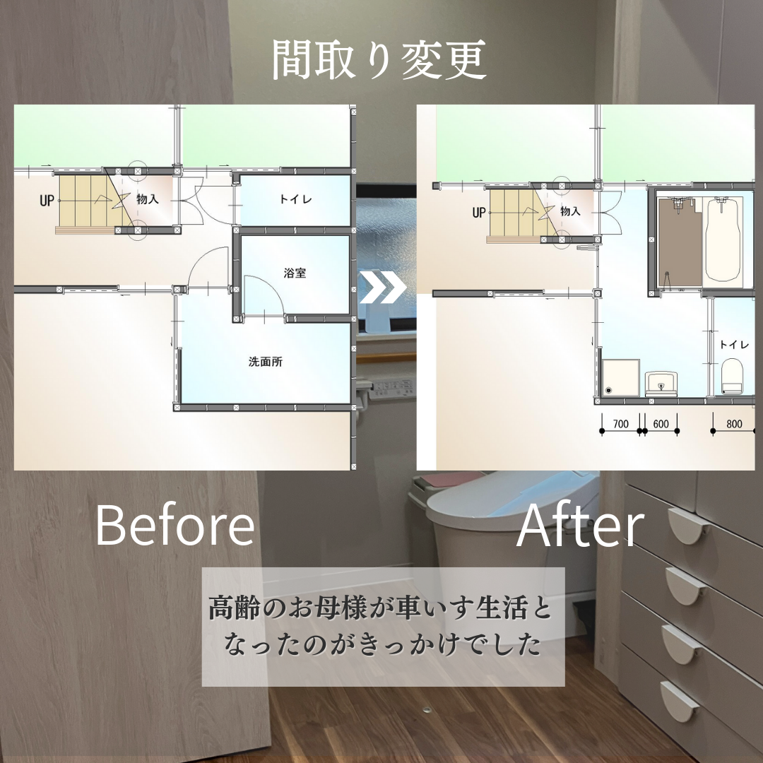 その後の改修工事では、キッチン・バスルーム・トイレのリフォームも同時に実施し、住まい全体を車いすにやさしい住まいへと段階的に整えていきました。