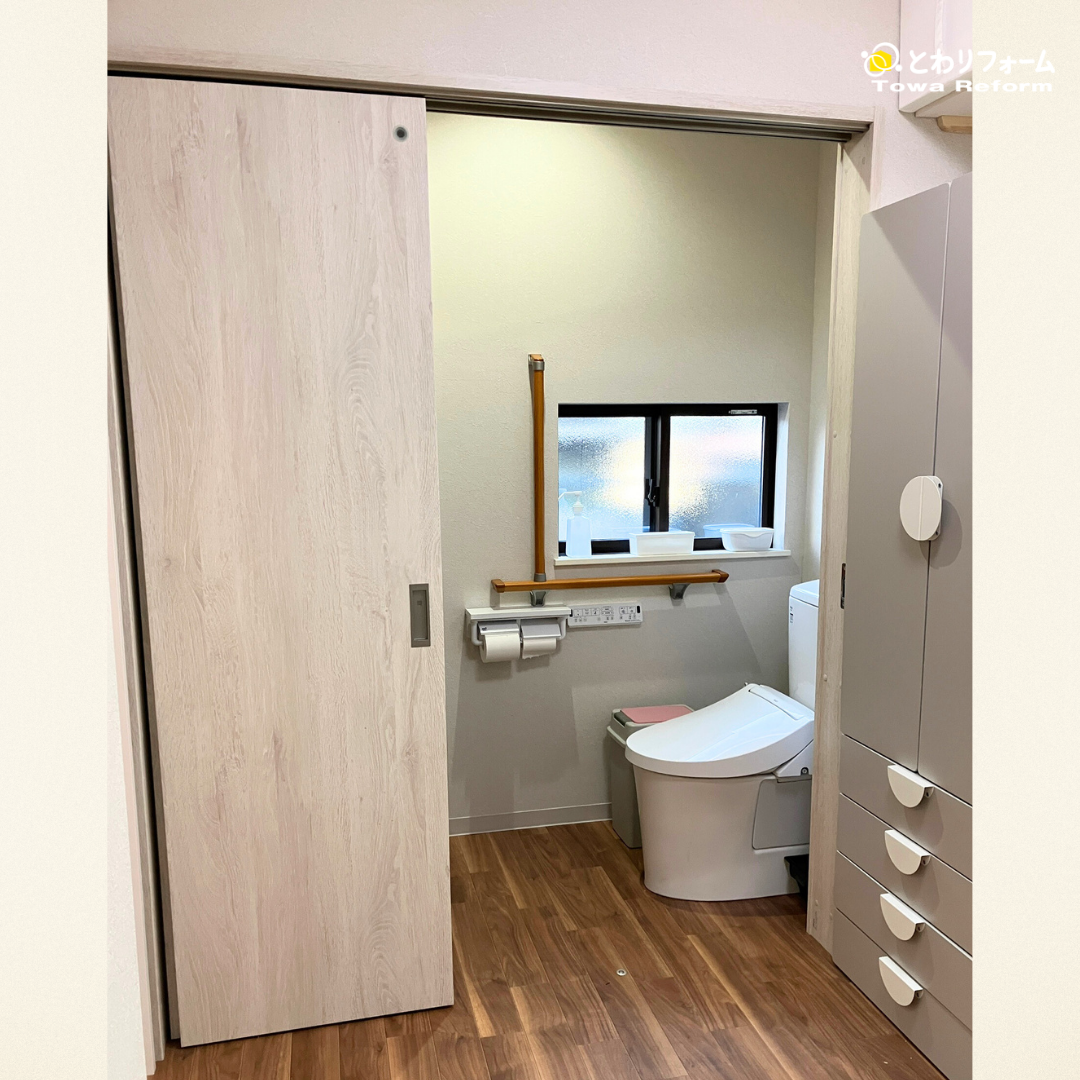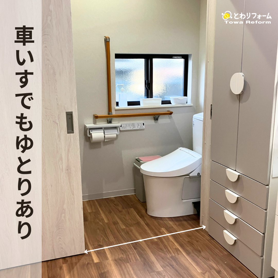 元々のトイレは、車いすでは窮屈さを感じやすい空間でしたのでレイアウトを見直しました。