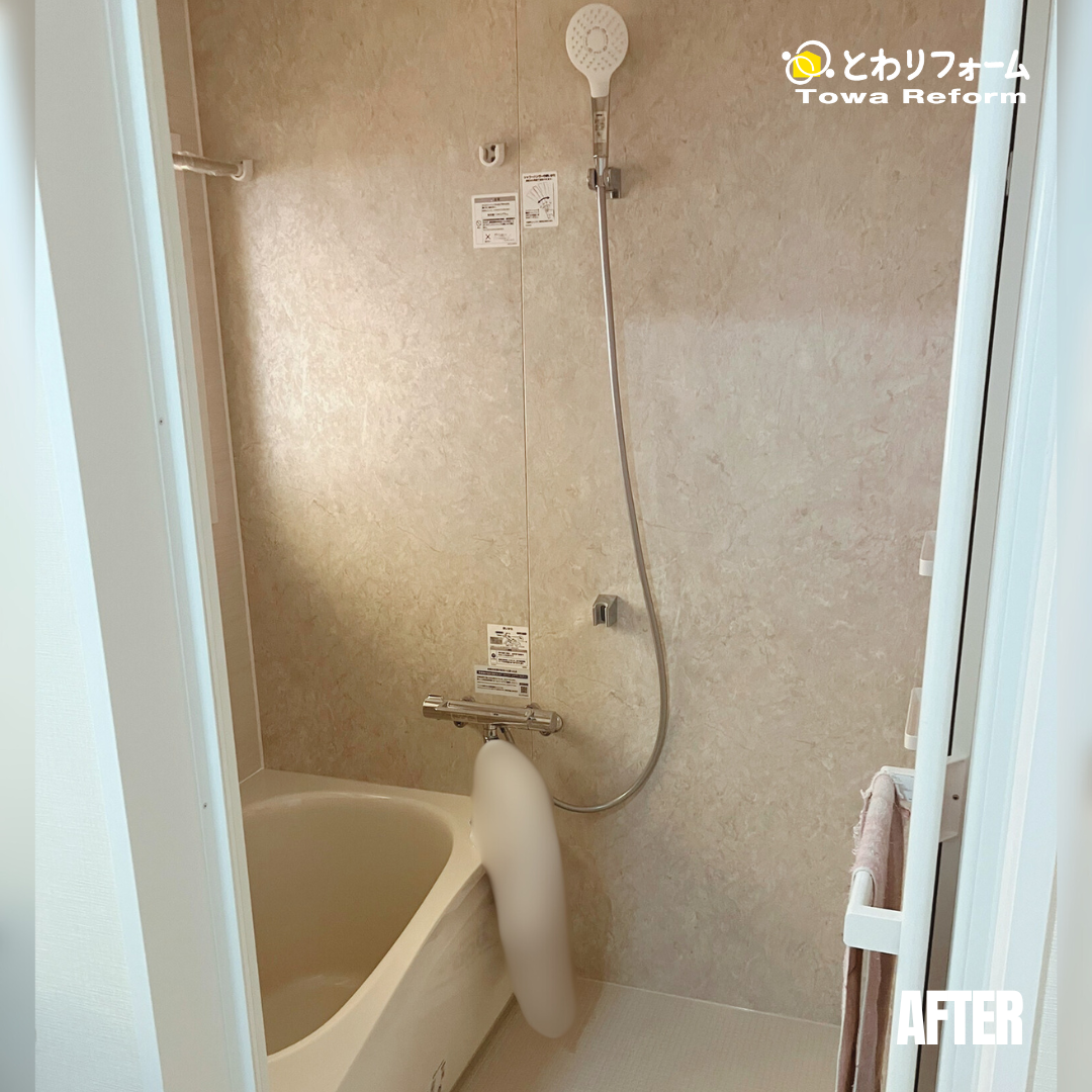 浴室全体をクリーム系のカラーで統一され、入浴しながらホッとくつろげる空間を演出できました。
