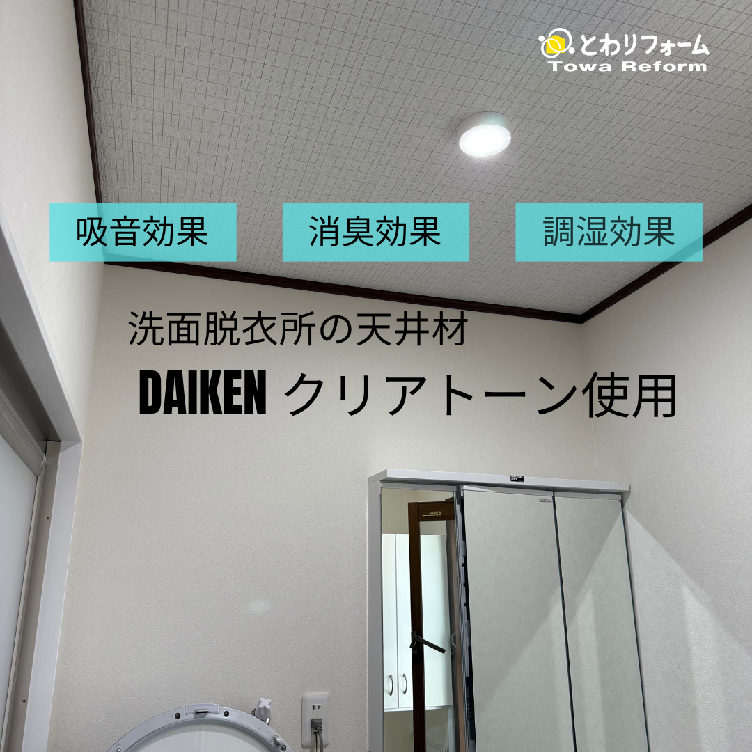 そして今回注目すべき脱衣所の天井材は、DAIKENのクリアトーンを使用しています。