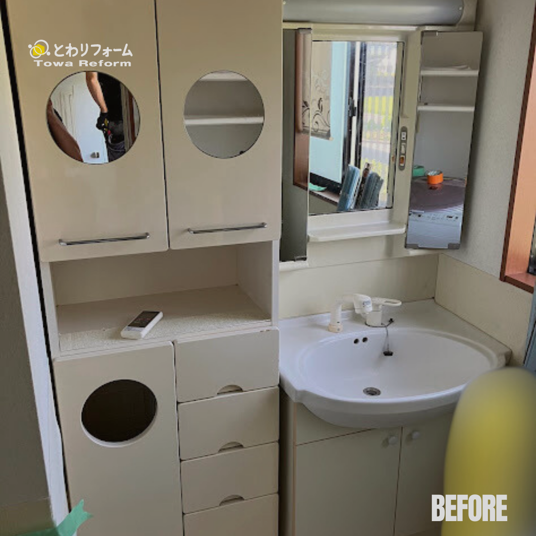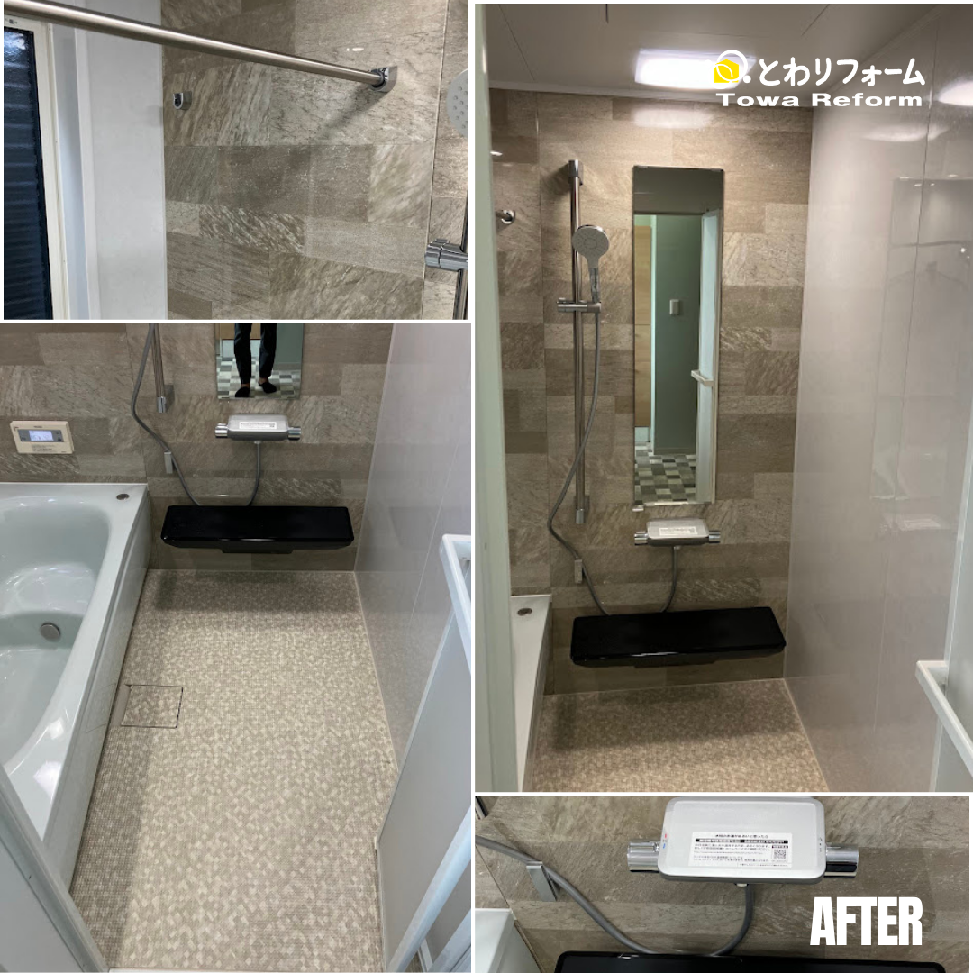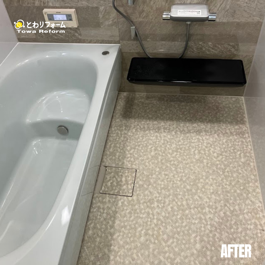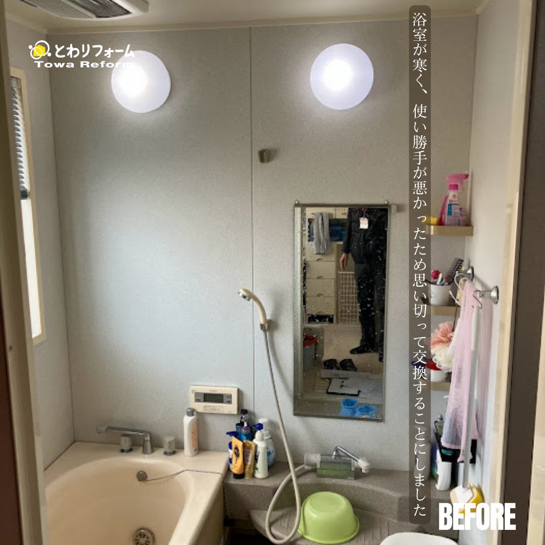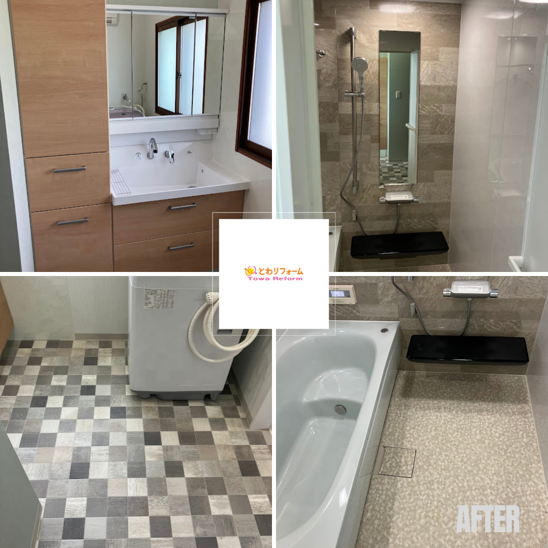浴室が寒く、また設備品の老朽化や掃除のしやすさも考え、バスルームと洗面脱衣所の全面改修をご依頼いただきました。