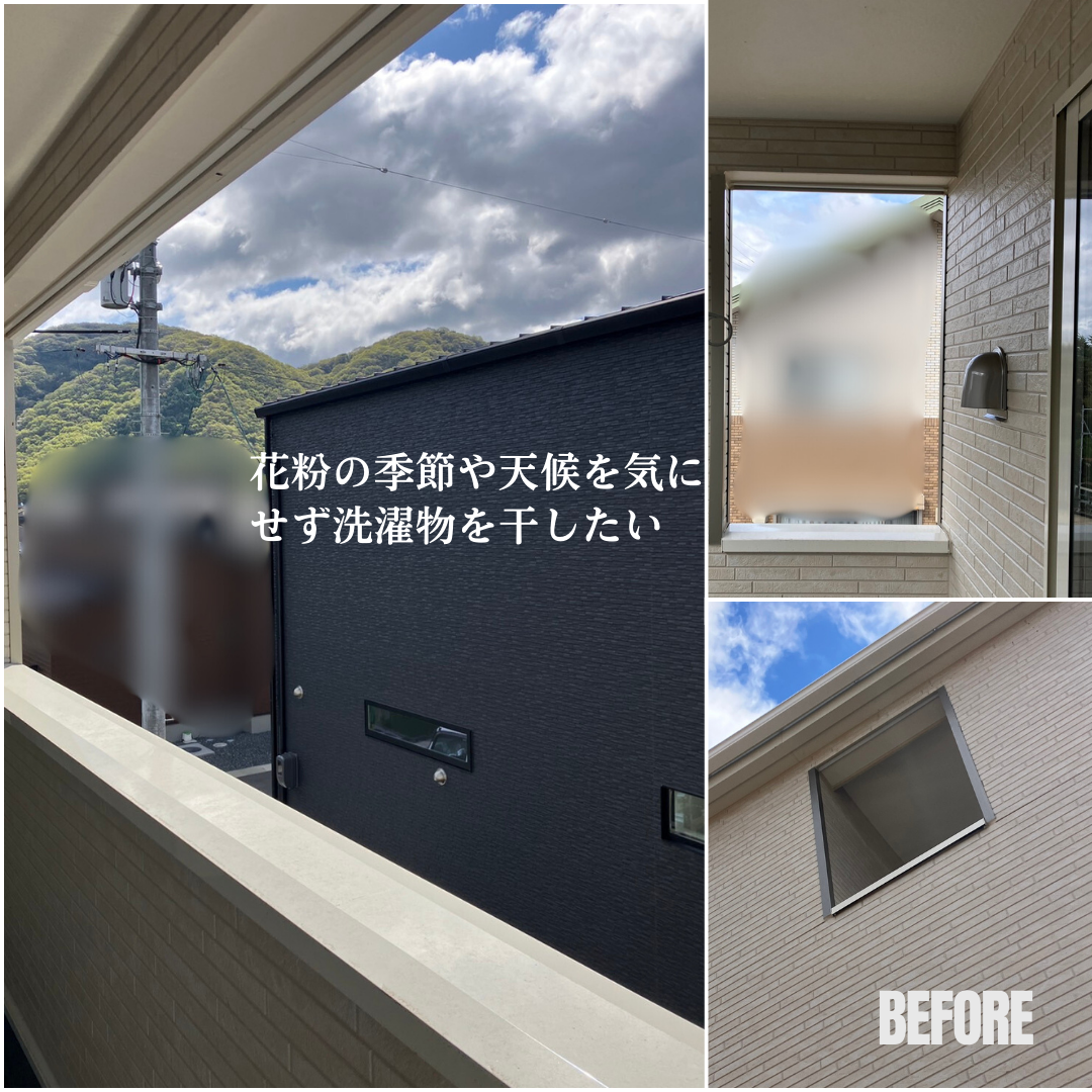今回のお客様も花粉症の為、せっかく天気が良くて外に洗濯物を干したくても、花粉や汚れなどが衣類に付着するのが嫌で外干しを諦めておられました。