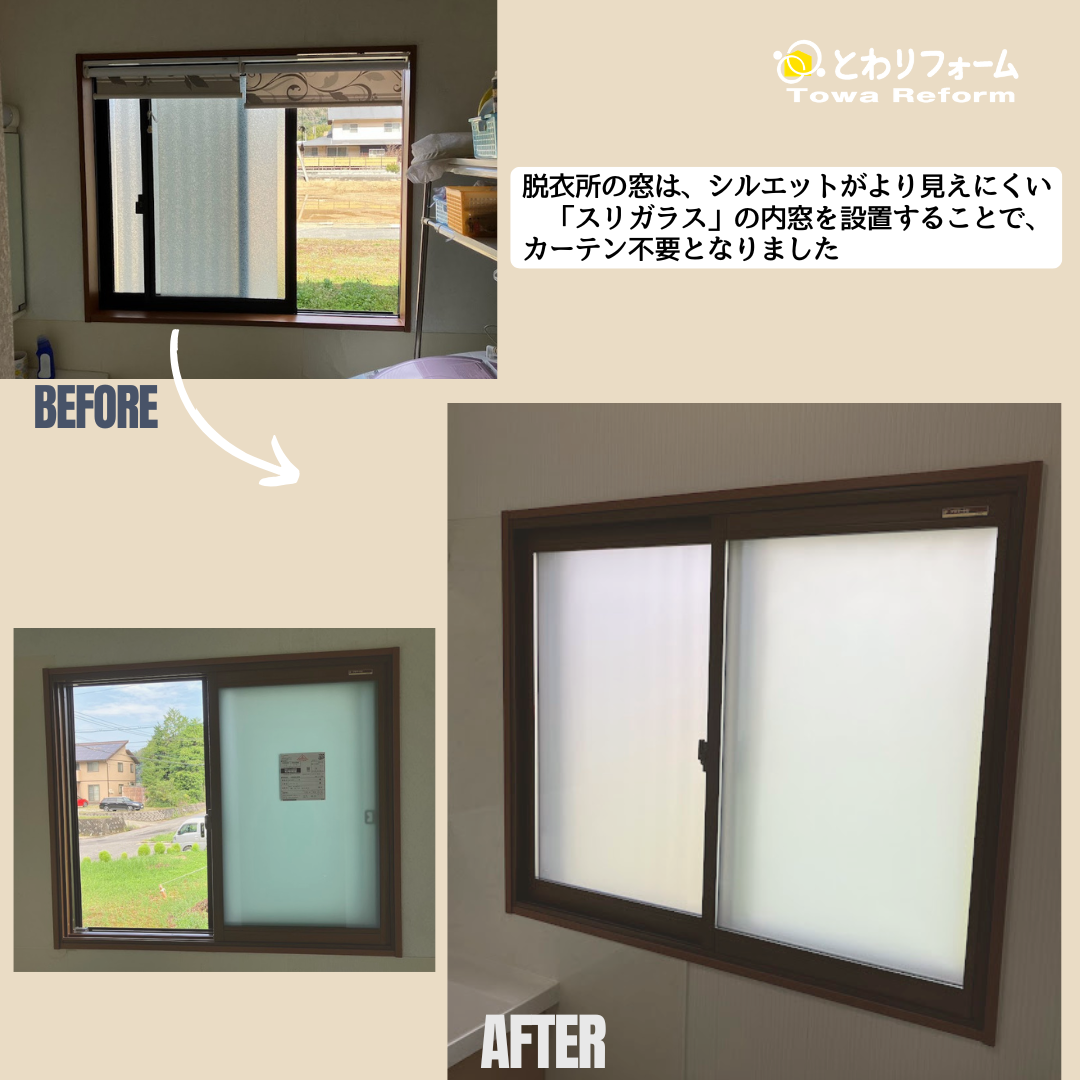 浴室窓は、YKKAPの遮熱LOw-E複層ガラスの外窓交換を行い、断熱性能を向上させました。
