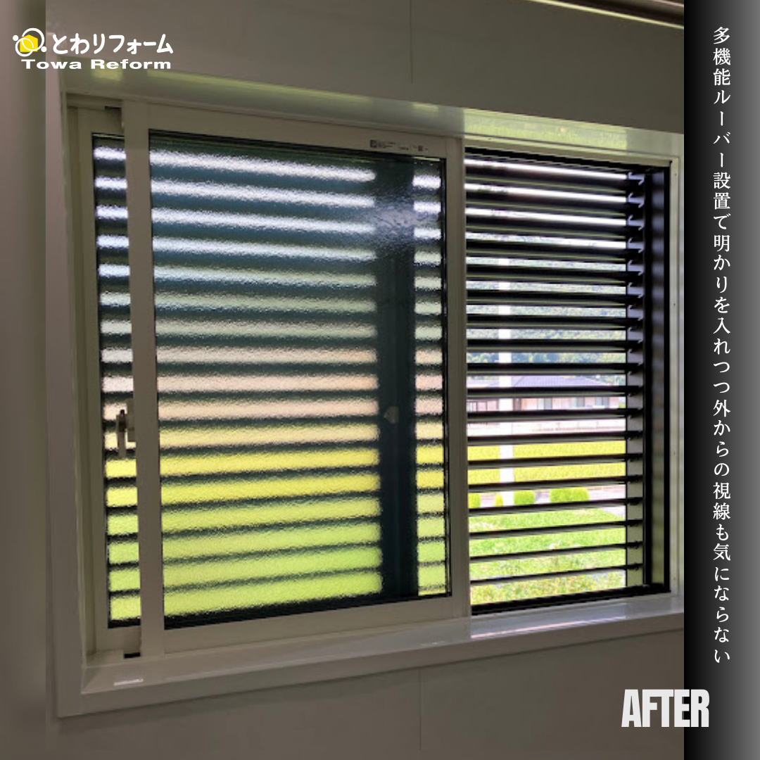 今回は、多機能ルーバーと窓設置の施工事例をご紹介いたします。(バスルーム・洗面脱衣所の施工事例は次回ご紹介します)