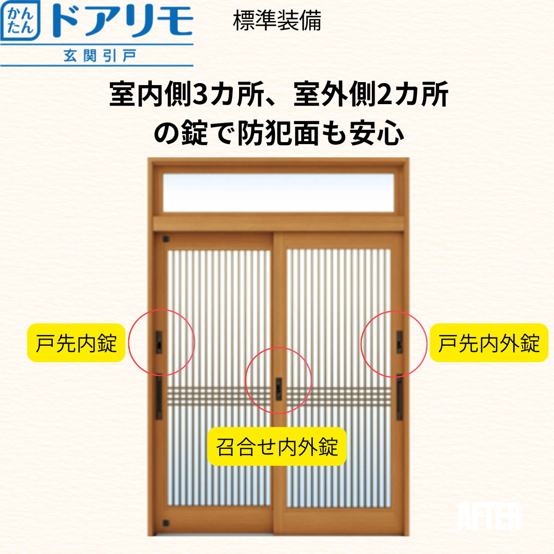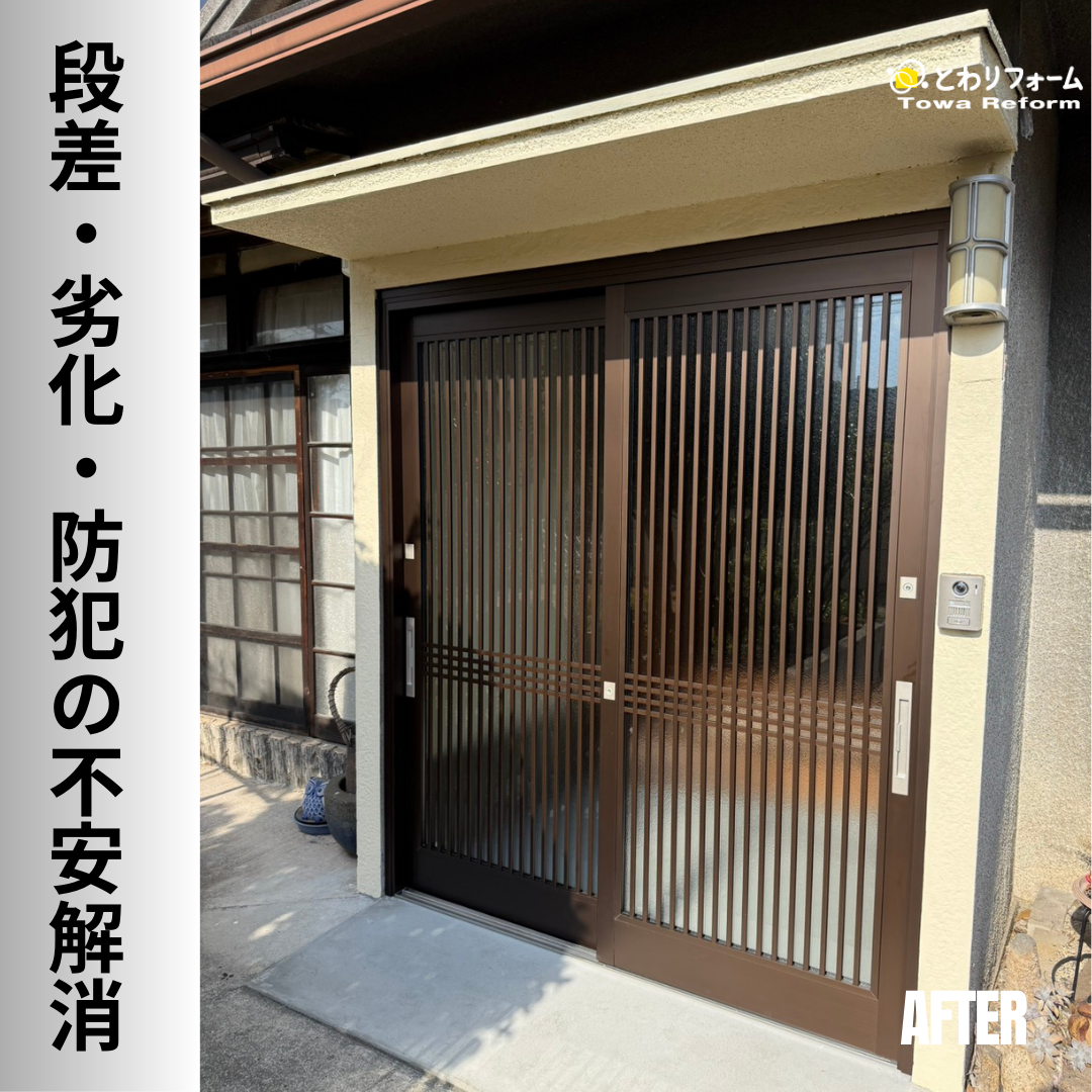 見た目もすっきりとした印象になり、防犯面・安全面の両方で安心できる玄関に生まれ変わりました。