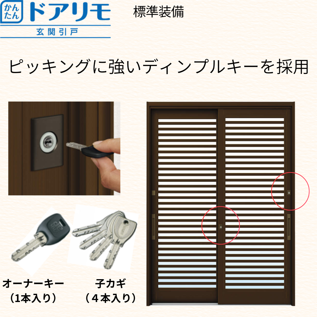 侵入犯は5分で侵入できないと7割が断念するといわれている為、ピッキングに強いディンプルキーは効果的です。