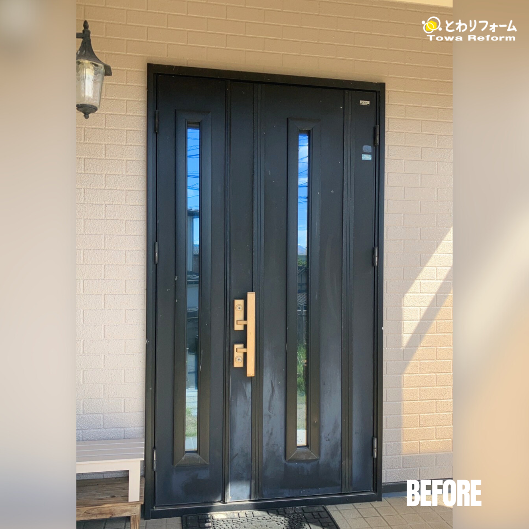 ・長年使用してきた玄関ドアの表面が白っぽく変色し、見た目の劣化が気になる