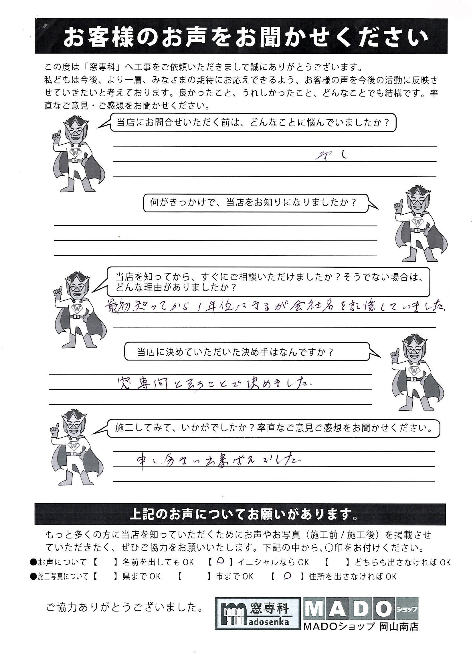 岡山市 I様 内窓設置